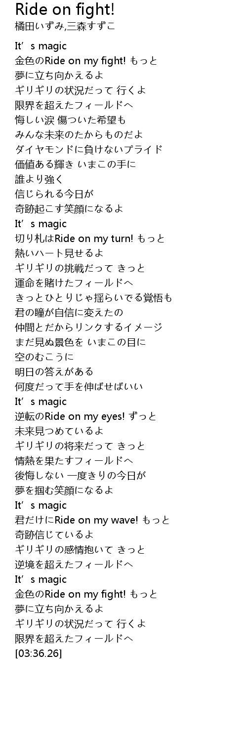 | [03:17.97] | 金色のRide on my fight! もっと |