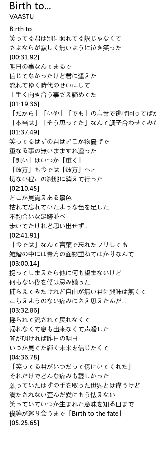 | [00:00.0] | Birth to |