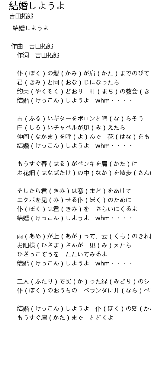 | 结婚(けっこん)しようよ 仆(ぼく)の髪(かみ)は | |