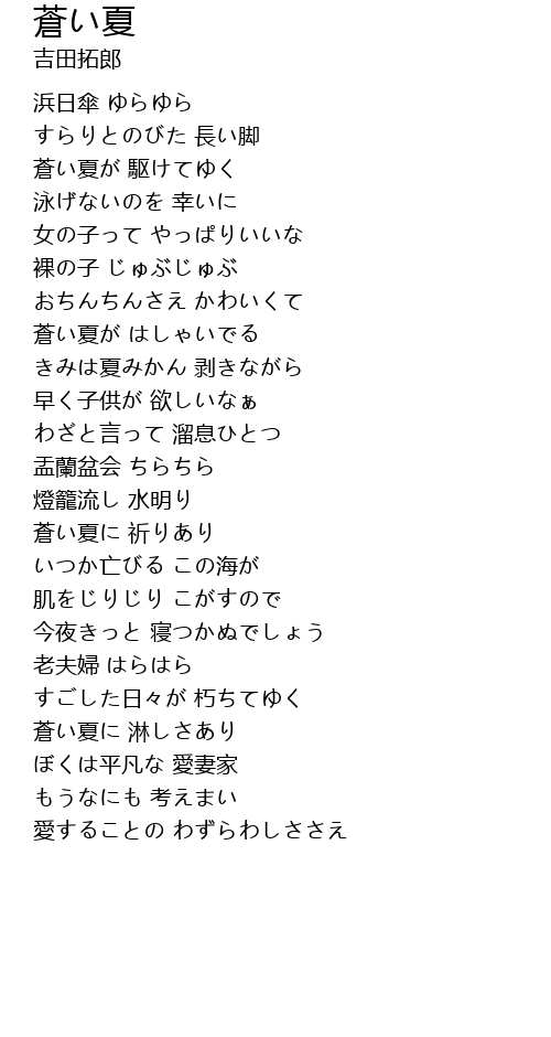 蒼い夏に 淋しさあり |