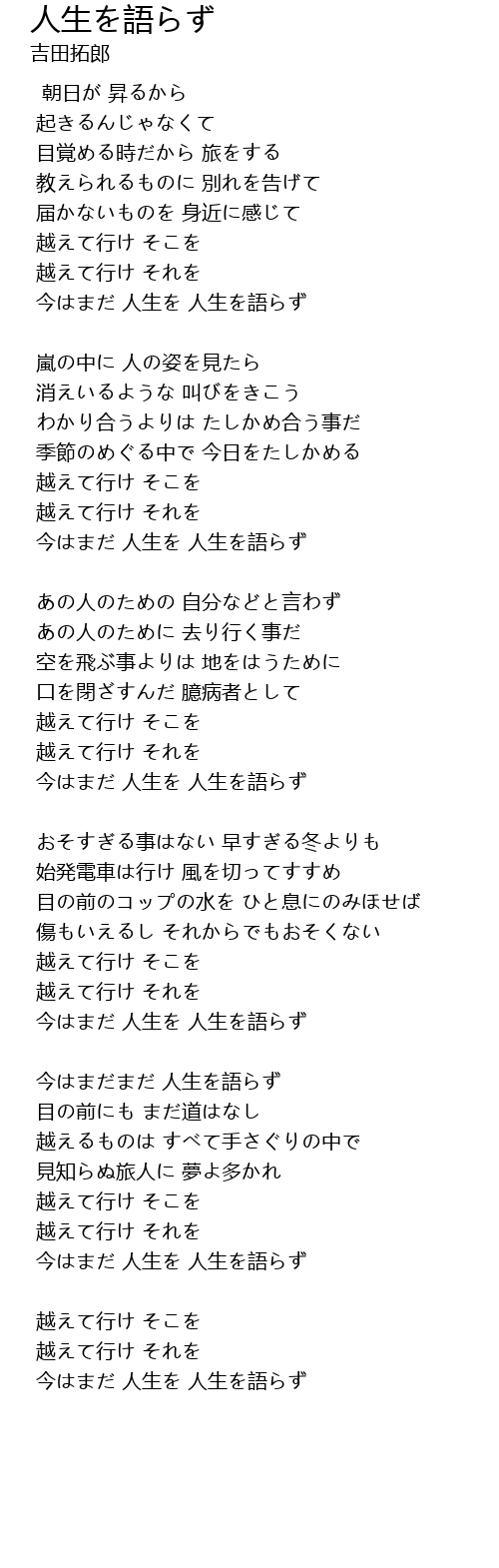 | 今はまだ 人生を 人生を語らず |