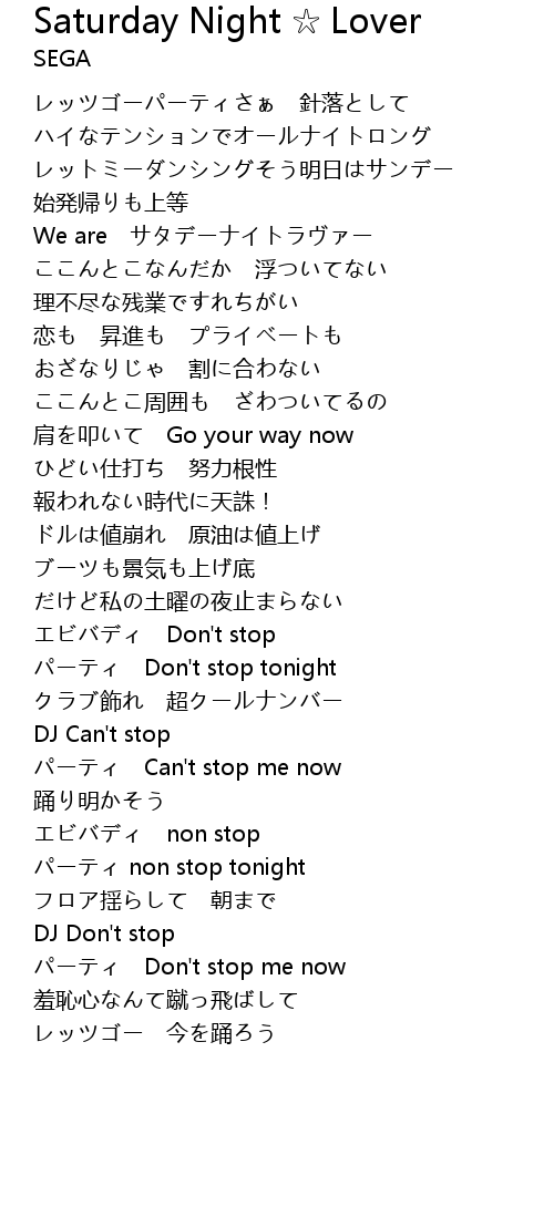 | [00:28.069] | We are サタデーナイトラヴァー |