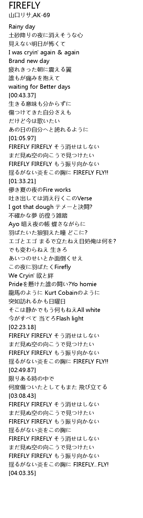 | [03:19.63] | FIREFLY FIREFLY もう振り向かない |