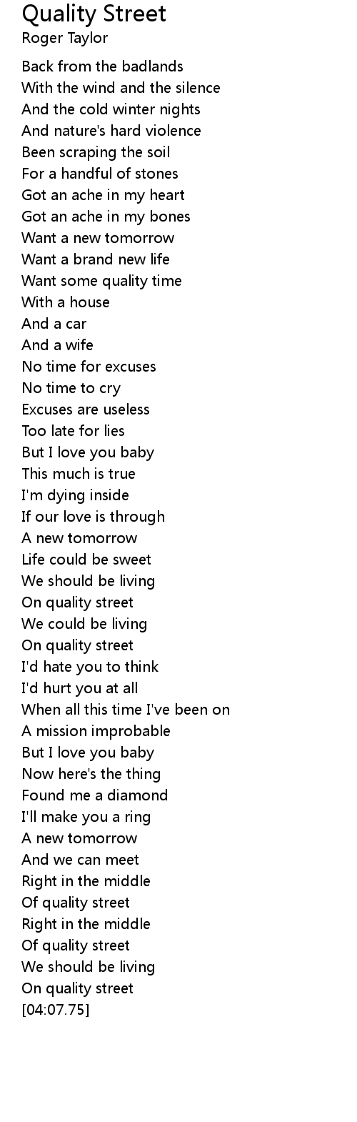 On quality street |