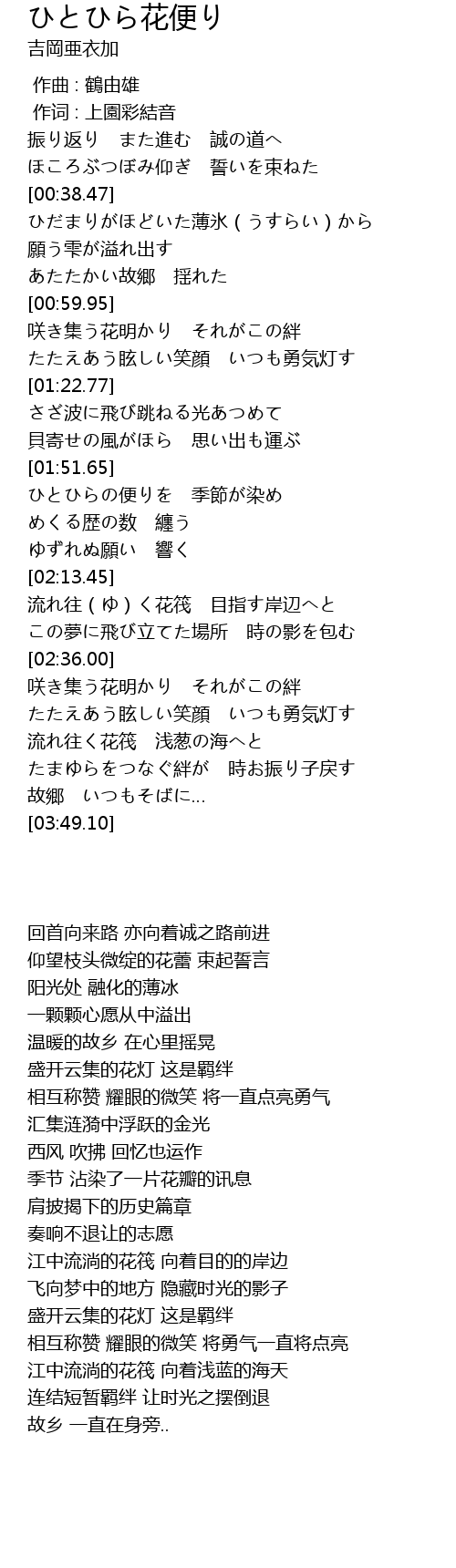 | [01:52.97] | ひとひらの便りを 季節が染め |