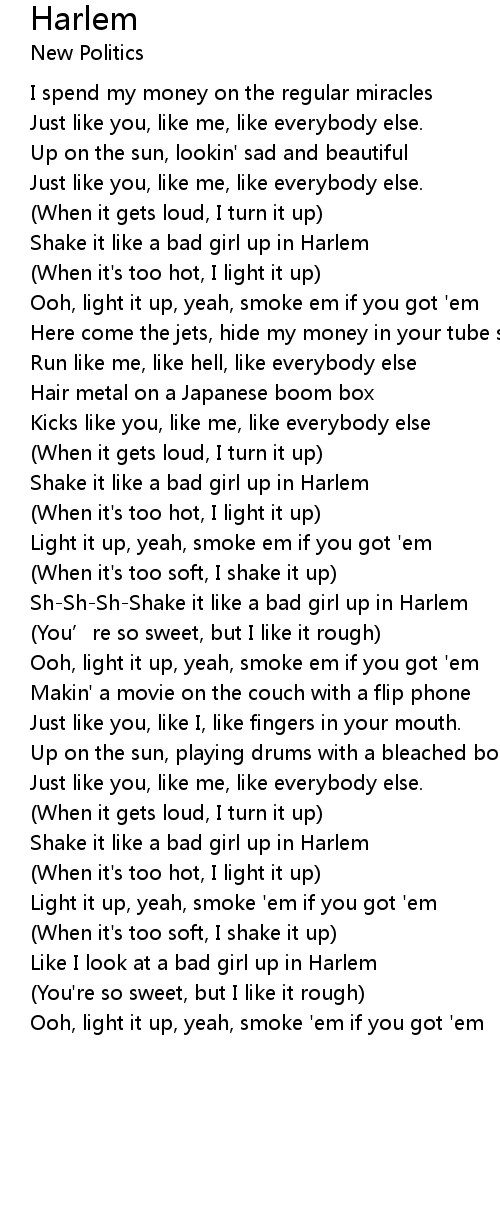 | Like I look at a bad girl up in Harlem | |