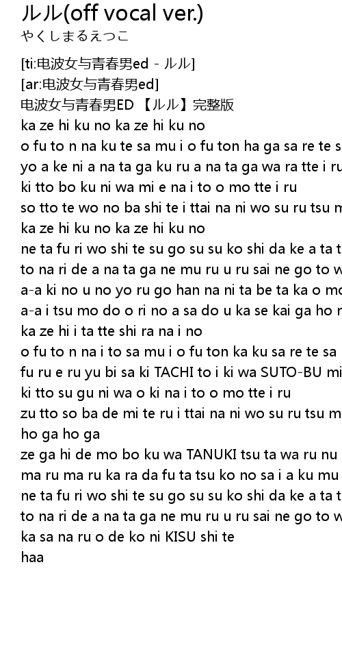 | [00:00.177] | 电波女与青春男ED 【ルル】完整版 |