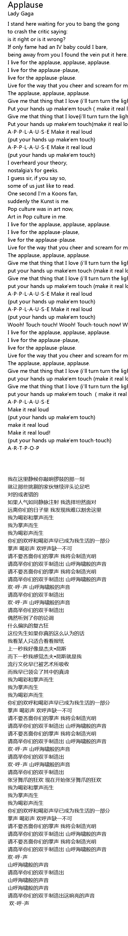 | [00:43.73] | I live for the applause-plause, |