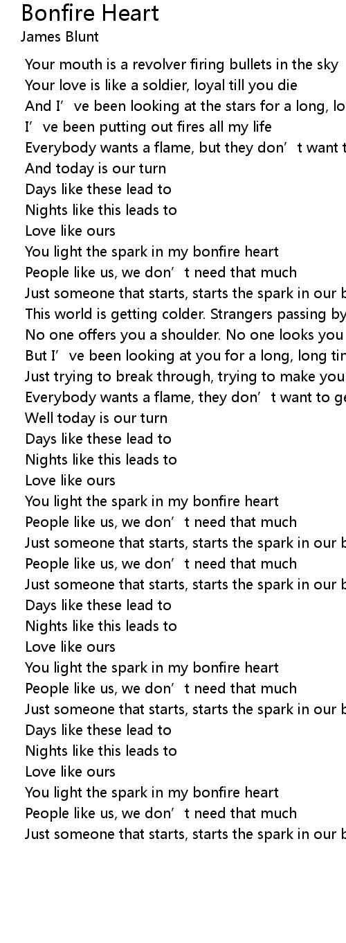 | [03:15.790] | Just someone that starts, starts the spark in our bonfire hearts |