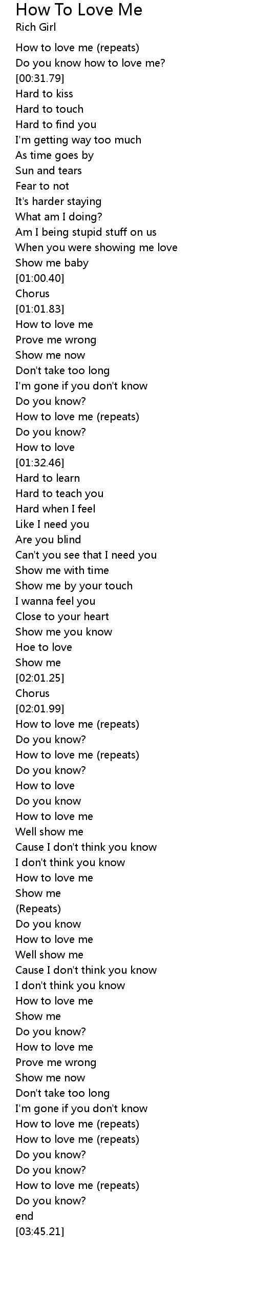| [01:23.64] | How to love me (repeats) |