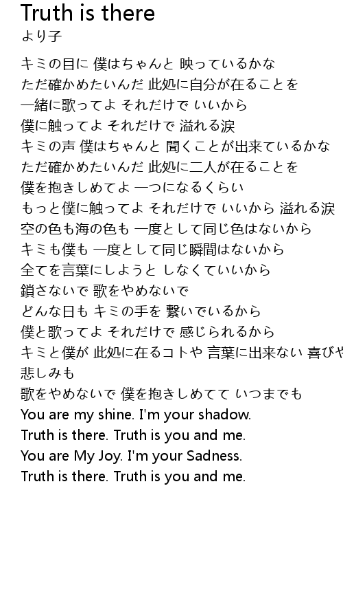 | Truth is there. Truth is you and me. |