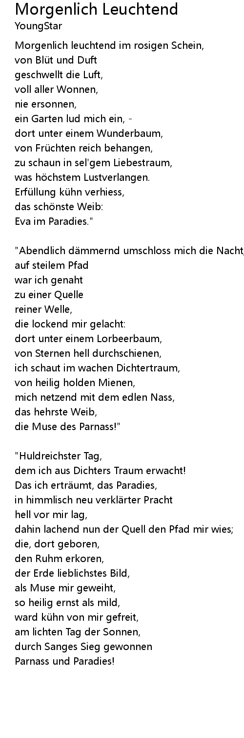 | Song | Morgenlich Leuchtend |