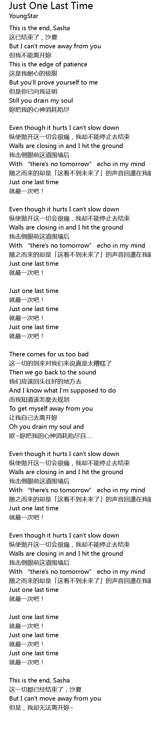 | Song | Just One Last Time |