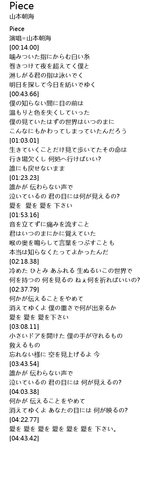 | [00:01.16] | Piece |