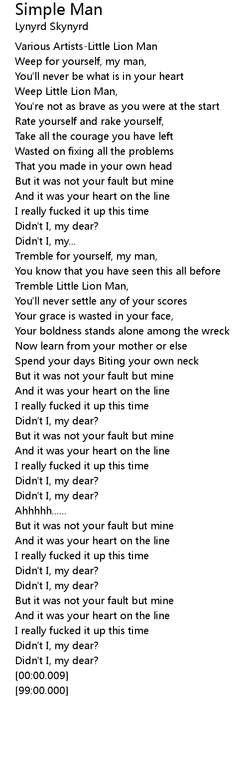 Weep Little Lion Man, |