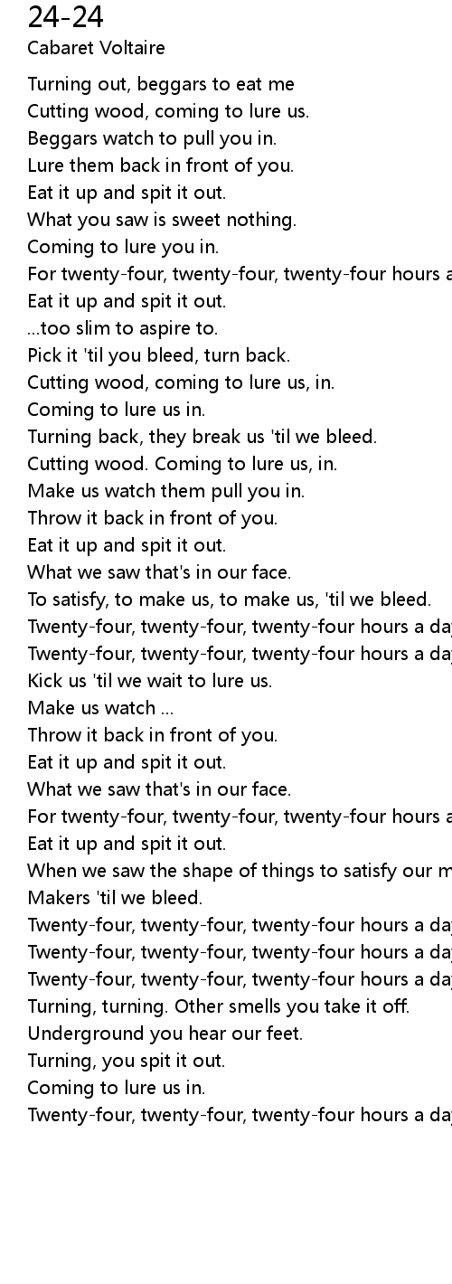 For twenty-four, twenty-four, twenty-four hours a day. |