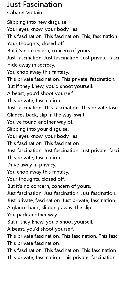 This fascination. This fascination. This fascination. |