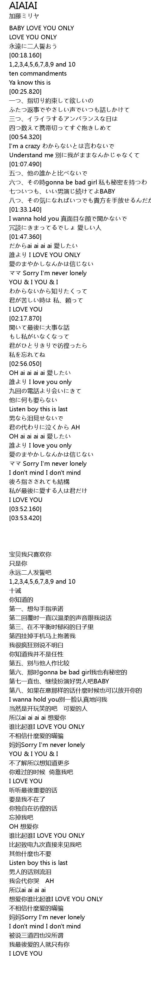 | [03:25.530] | shui I love you only |