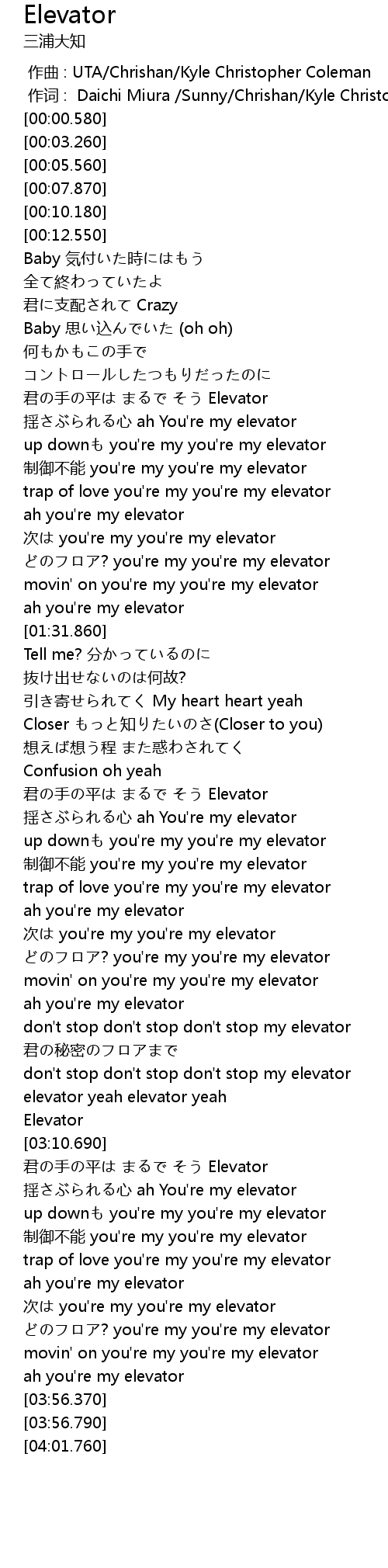 | [02:56.090] | don' t stop don' t stop don' t stop my elevator |