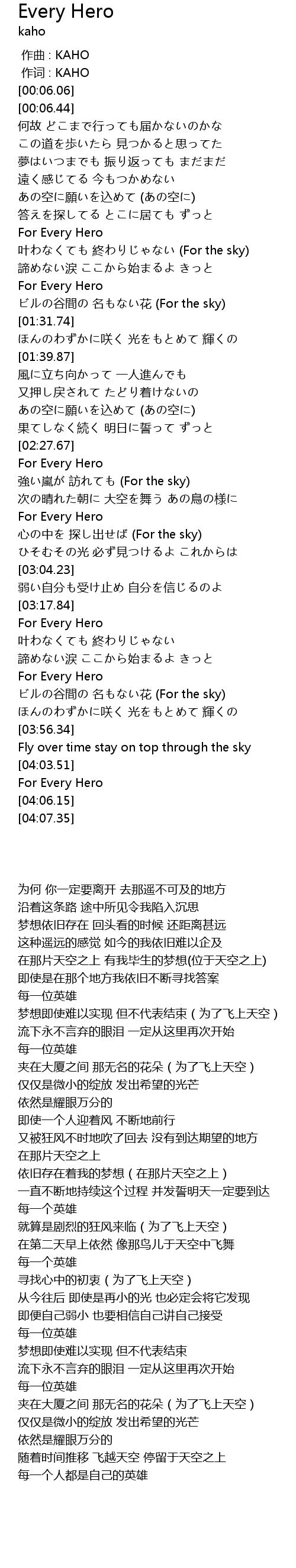 | [02:49.38] | xīn zhōng tàn chū For the sky |