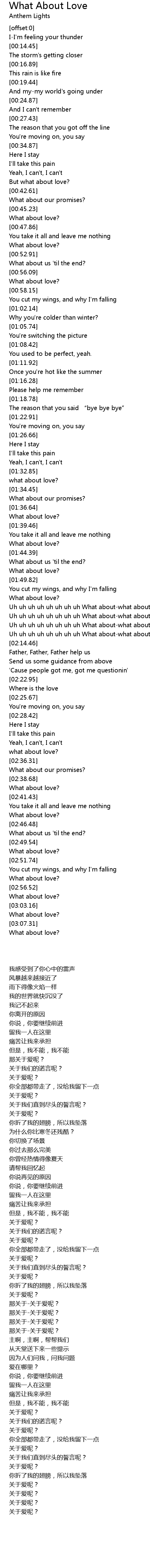 | [01:59.57] | Uh uh uh uh uh uh uh uh What about-what about love? |