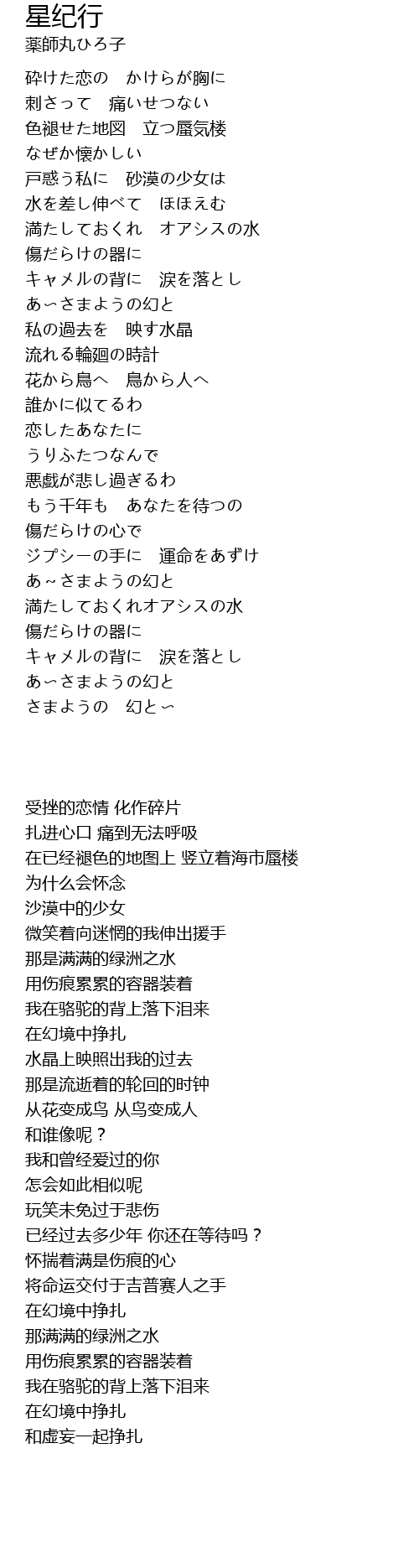 | [00:35.53] | 色褪せた地図 立つ蜃気楼 |