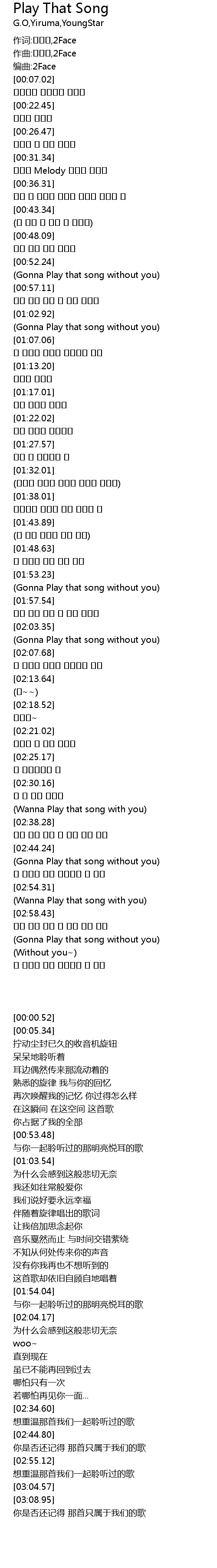 | [01:58.85] | 너와 함께 듣던 이 밝은 노래가 |