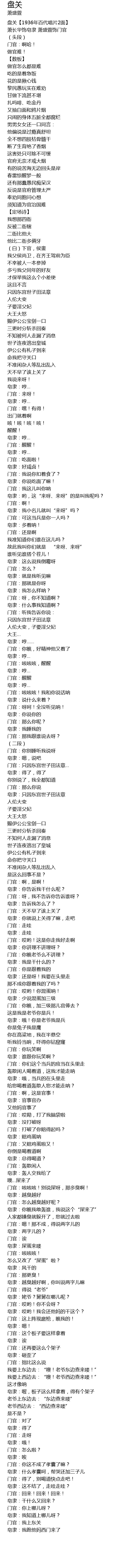 | [00:00.20] | 盘关【1936年百代唱片2面】 |
