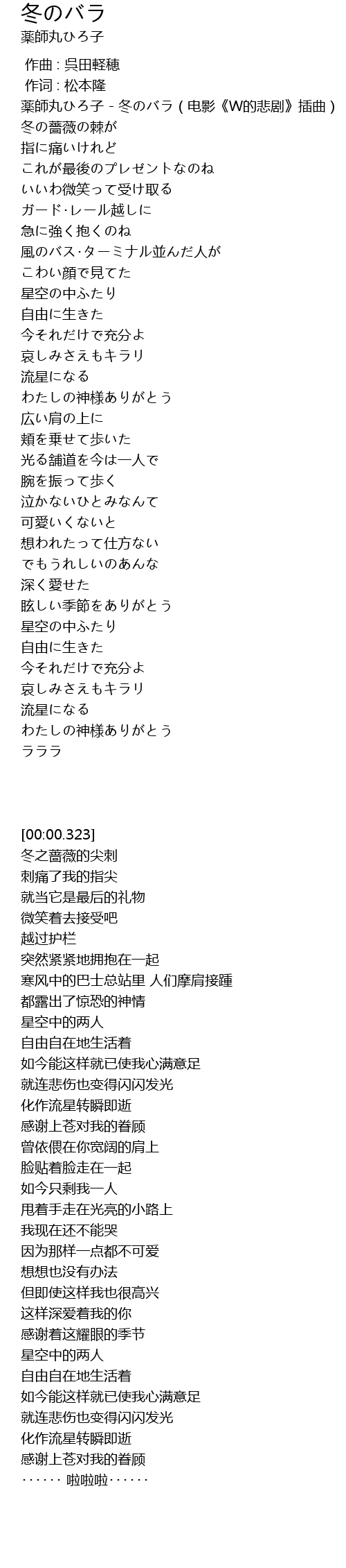 | [00:00.323] | 薬師丸ひろ子 - 冬のバラ(电影《W的悲剧》插曲) |