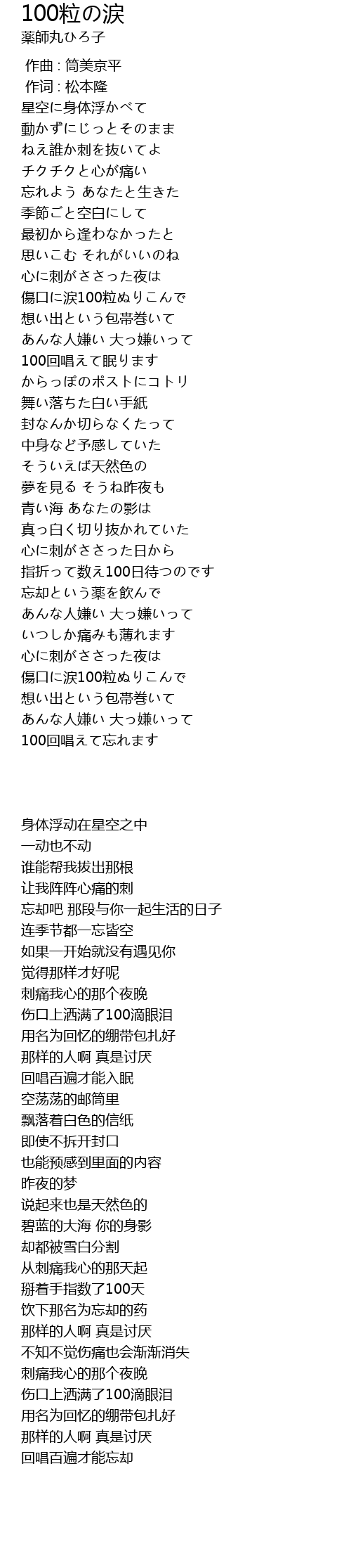 | Song | 100粒の涙 |