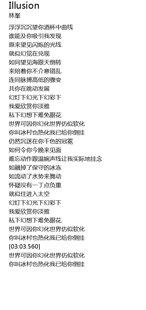 | [02:39.880] | 世界可因你幻化世界仿似软化 |