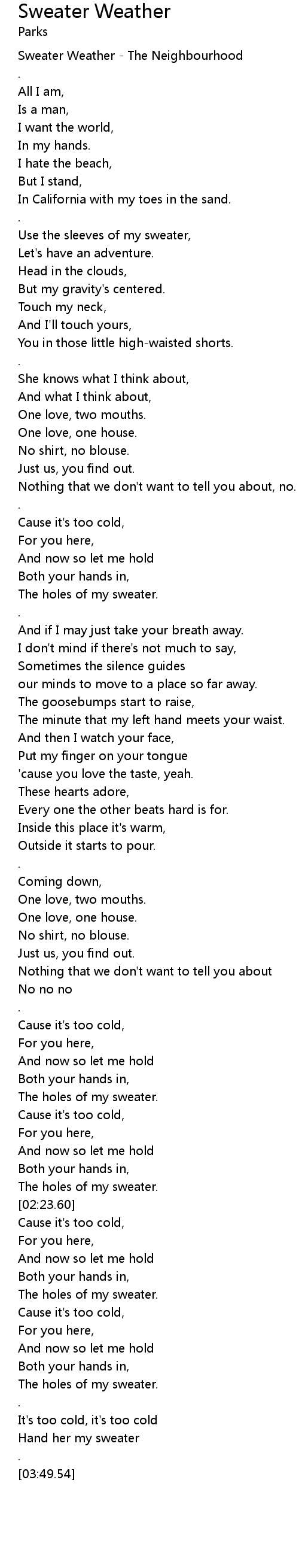 Sweater Weather - The Neighbourhood |