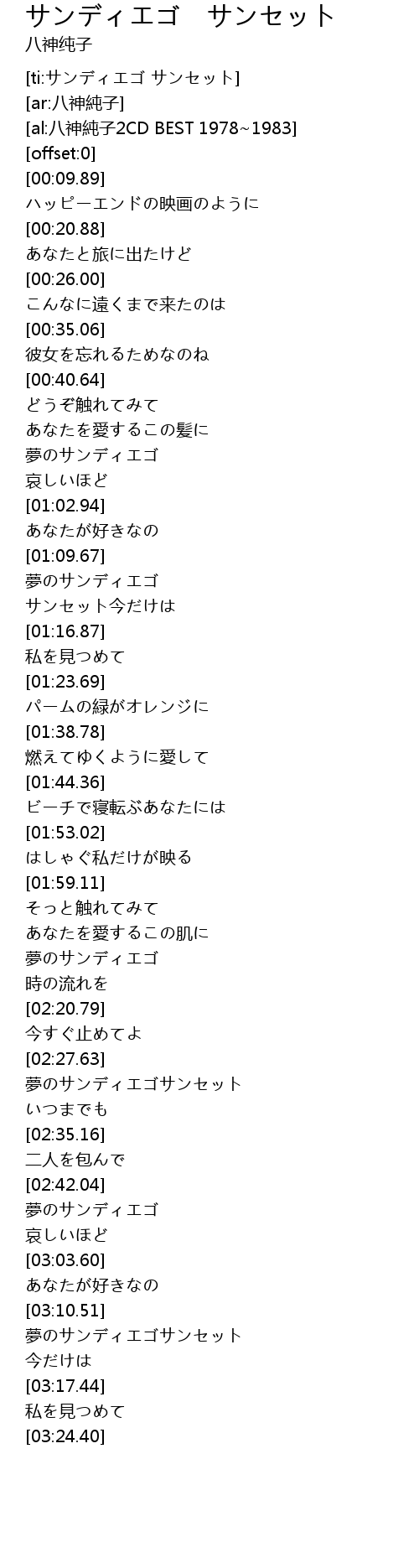 | [02:28.56] | 夢のサンディエゴサンセット |