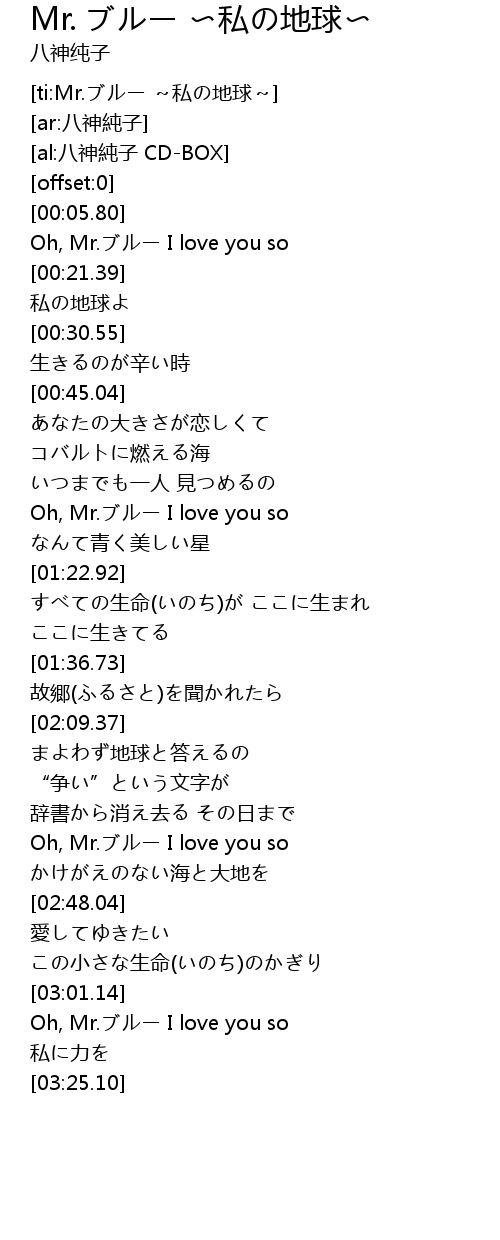 | [00:15.67] | Oh, Mr.ブルー I love you so |