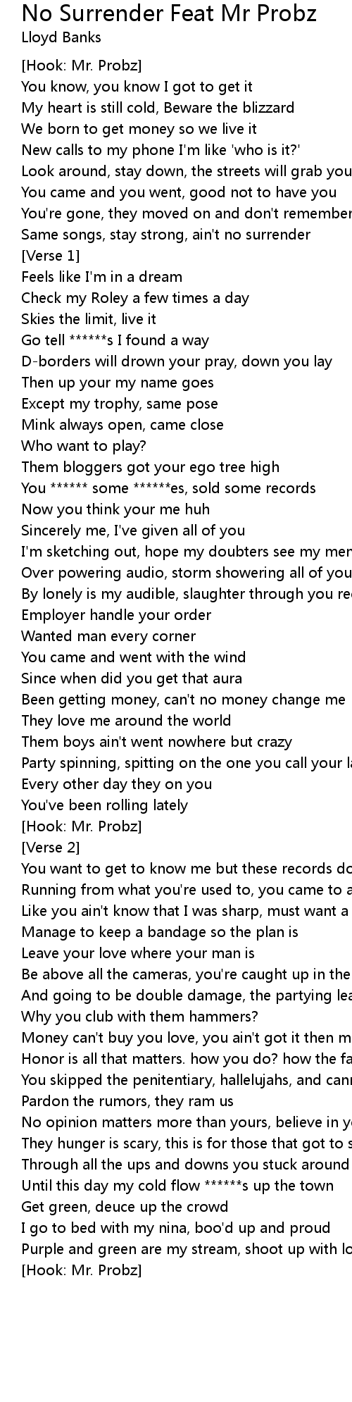 Same songs, stay strong, ain't no surrender |