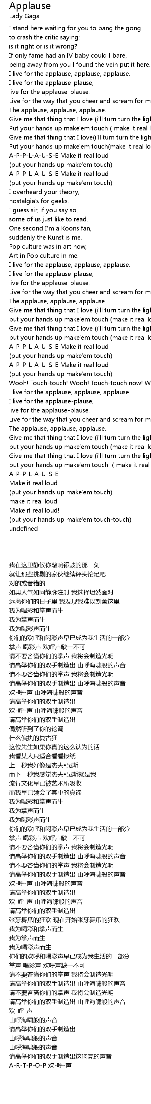 | [01:15.82] | A-P-P-L-A-U-S-E Make it real loud |