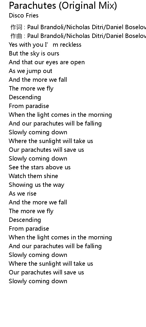 | [04:27.000] | And our parachutes will be falling |