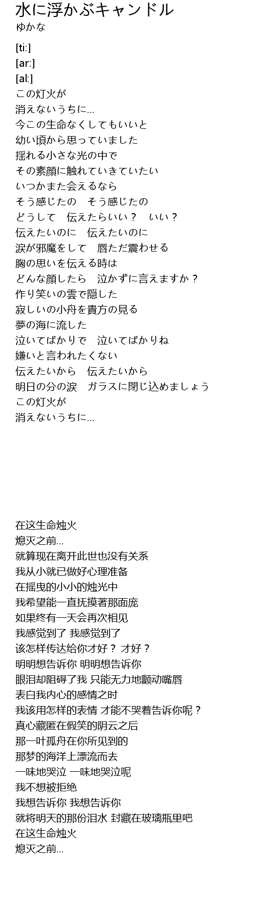 | [00:56.80] | 揺れる小さな光の中で |