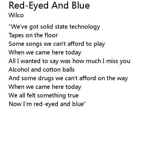 | Now I'm red-eyed and blue" |