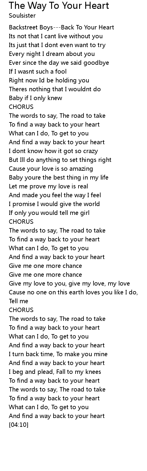 The Way To Your Heart Lyrics