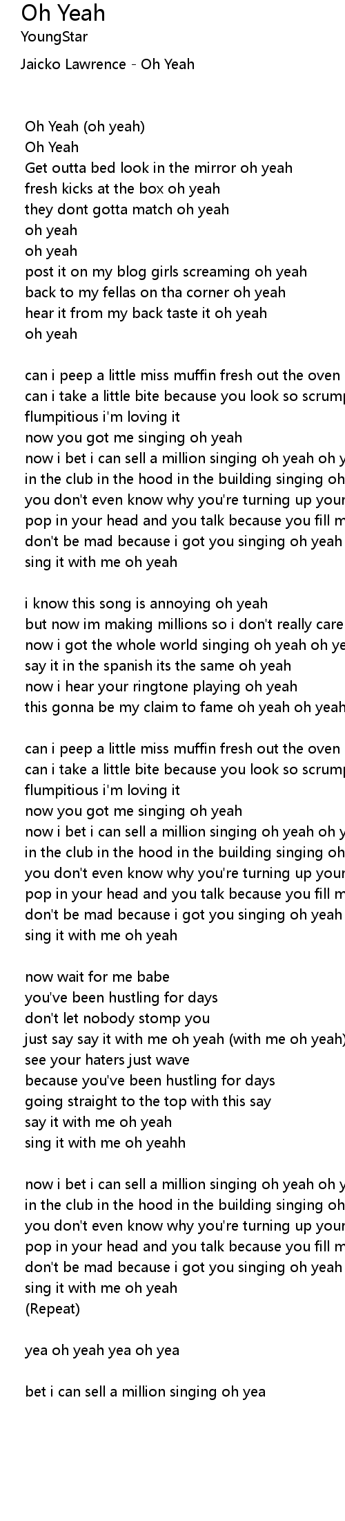 yea oh yeah yea oh yea |