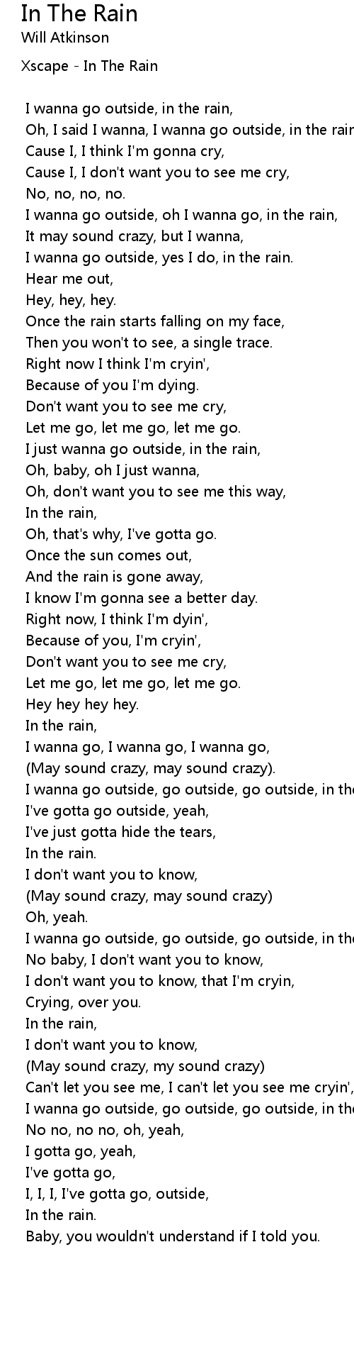 Oh, I said I wanna, I wanna go outside, in the rain. |