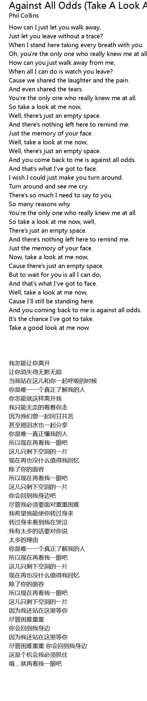 And you come back to me is against all odds. |