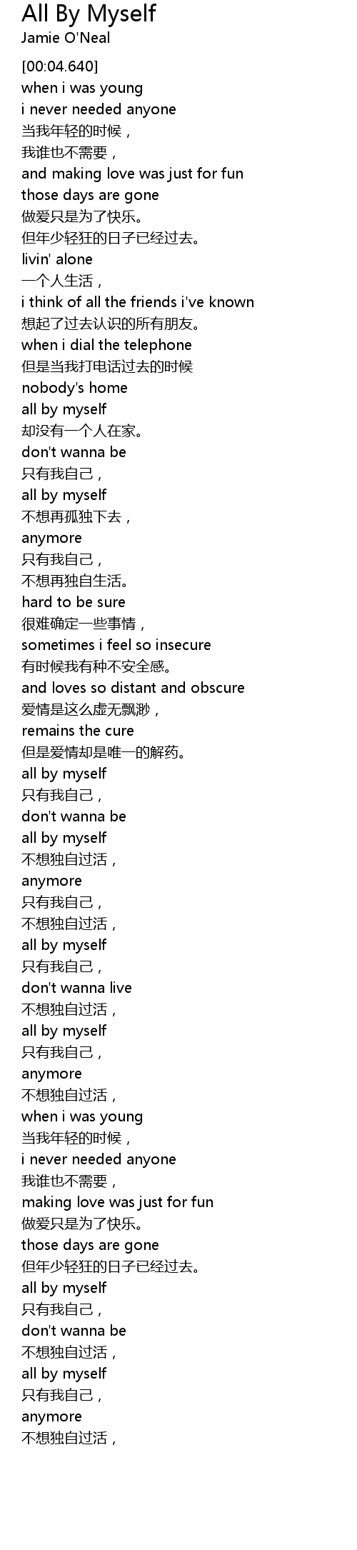 | [01:46.670] | zhǐ yǒu wǒ zì jǐ, |