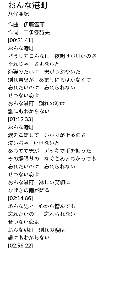 | [00:22.24] | おんな港町 |