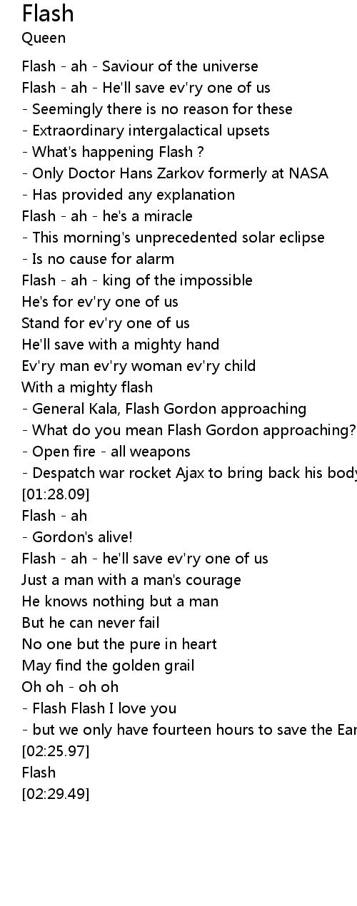 Flash - ah - he'll save ev'ry one of us |