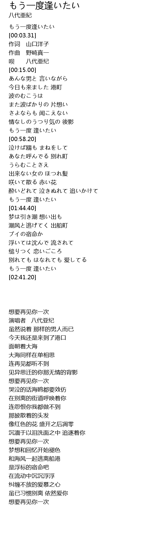 | [02:36.46] | もう一度 逢いたい |