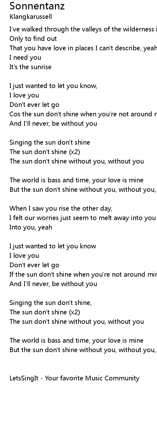 Singing the sun don't shine |