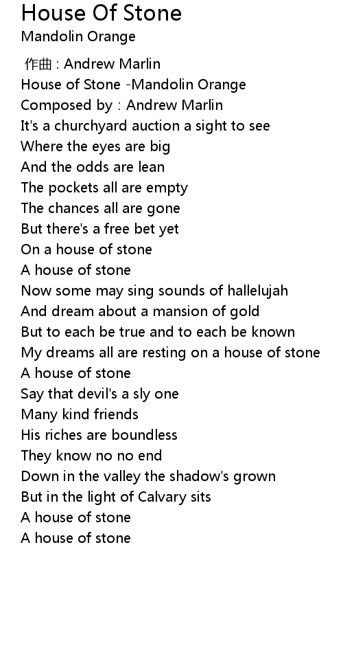 | [00:00.216] | House of Stone -Mandolin Orange |