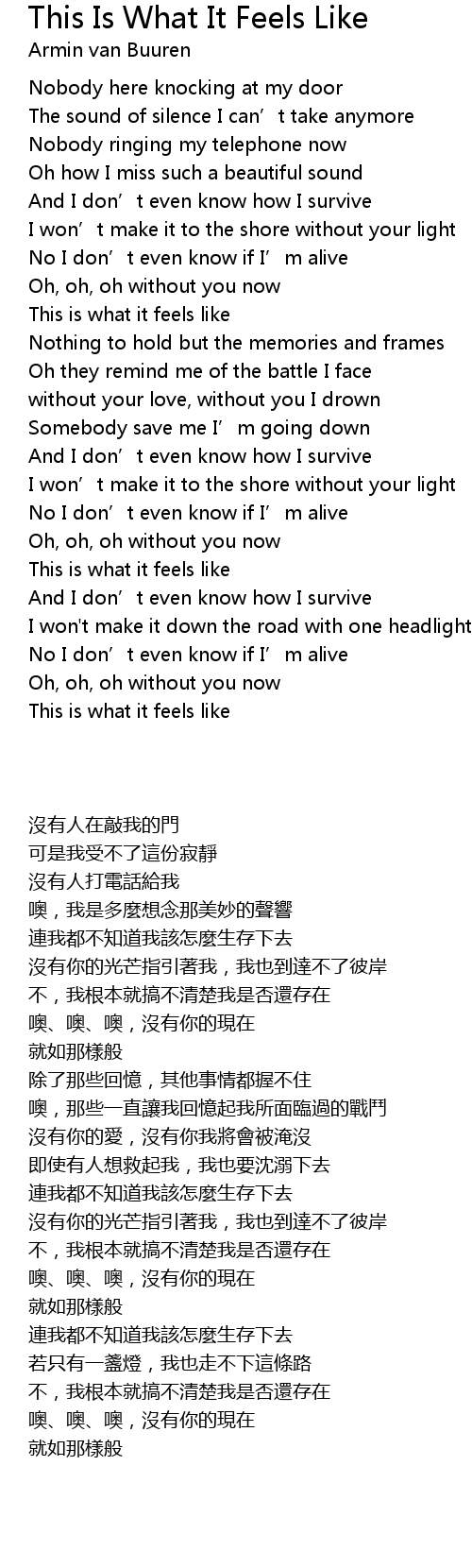 | [03:17.41] | This is what it feels like |